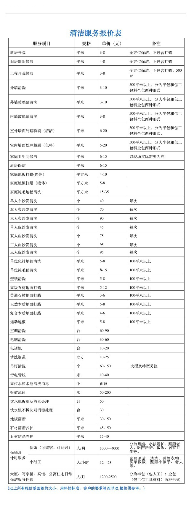 關于北京舒特通州區保潔服務有限公司|收費標準