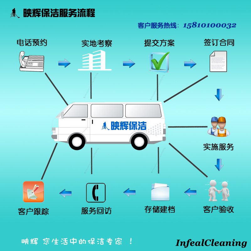 北京舒特是一家綜合性的通州區專業保潔公司,目前主營業務有:家庭保潔、開荒保潔、地毯清洗、大理石打磨拋光,托管保潔等清潔服務,映輝所有保潔人員均經過專業的保潔培訓,嚴格的質量過程控制系統確保始終如一的優質服務,下面映輝北京保潔公司服務流程向大家介紹下: